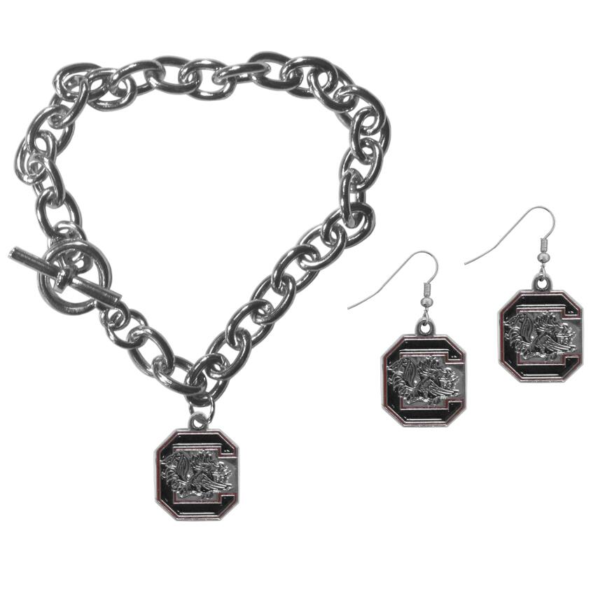 This South Carolina Gamecocks jewelry set comes with lightweight dangle earrings and a toggle chain bracelet. This sporty combo is the perfect fashion accessory for a fan looking for a fashionable way to show off her team pride.
