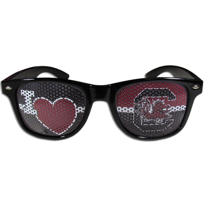 Our officially licensed I Heart game day shades are the perfect accessory for the devoted South Carolina Gamecocks fan! The sunglasses have durable polycarbonate frames with flex hinges for comfort and damage resistance. The lenses feature brightly colored team clings that are perforated for visibility.