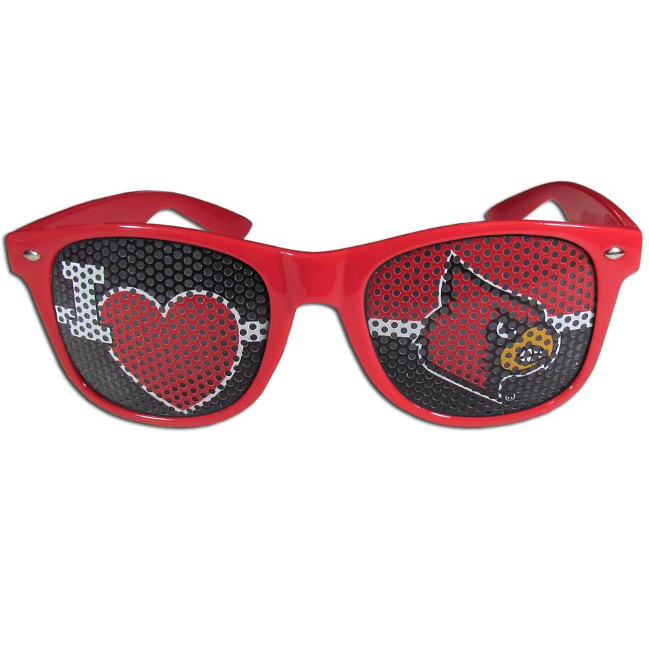Our officially licensed I Heart game day shades are the perfect accessory for the devoted Louisville Cardinals fan! The sunglasses have durable polycarbonate frames with flex hinges for comfort and damage resistance. The lenses feature brightly colored team clings that are perforated for visibility.