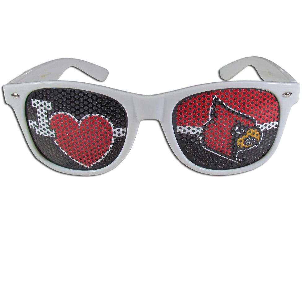 Our officially licensed I Heart game day shades are the perfect accessory for the devoted Louisville Cardinals fan! The sunglasses have durable polycarbonate frames with flex hinges for comfort and damage resistance. The lenses feature brightly colored team clings that are perforated for visibility.