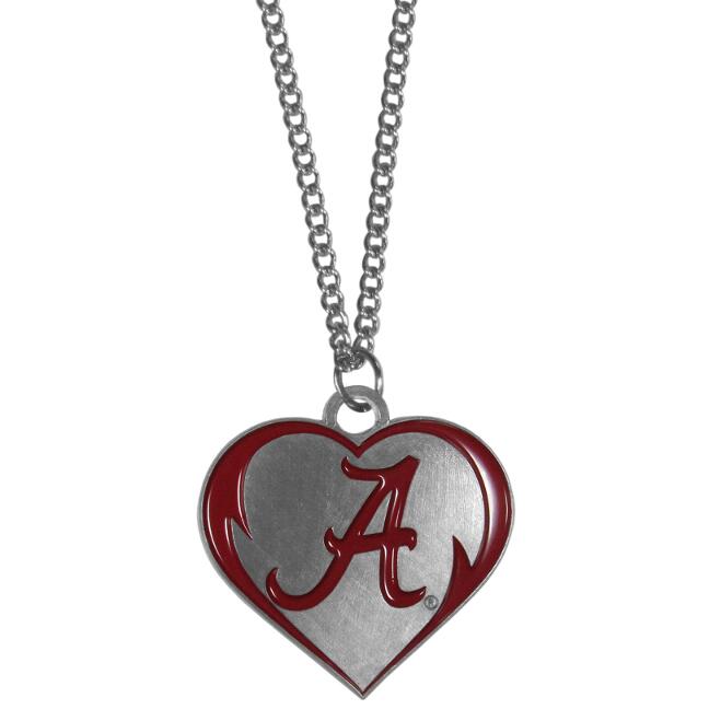 This bold heart necklace has a 1 1/8 inch heart charm on a 22 inch chaing. The charms feature a fully cast Alabama Crimson Tide logo with expertly enameled detail and a beautiful enameled swirl finish. A perfect addition to any fan's jewelry collection.