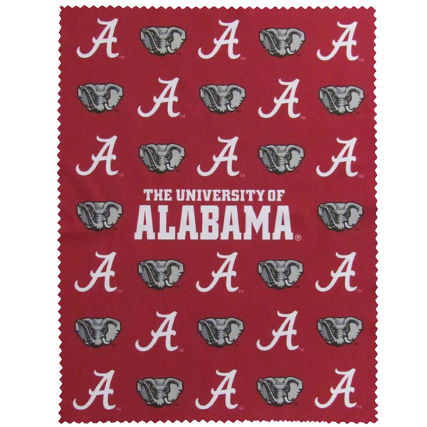 Our iPad microfiber cleaning cloth is great for keeping your iPad screen free of oil, dirt and smudges. The cloth is sized to perfectly fit the iPad screen so that it lays over it as added protection when the device is in a case. 7.5 x 9.5 inch cloth. The cloth features Alabama Crimson Tide graphics