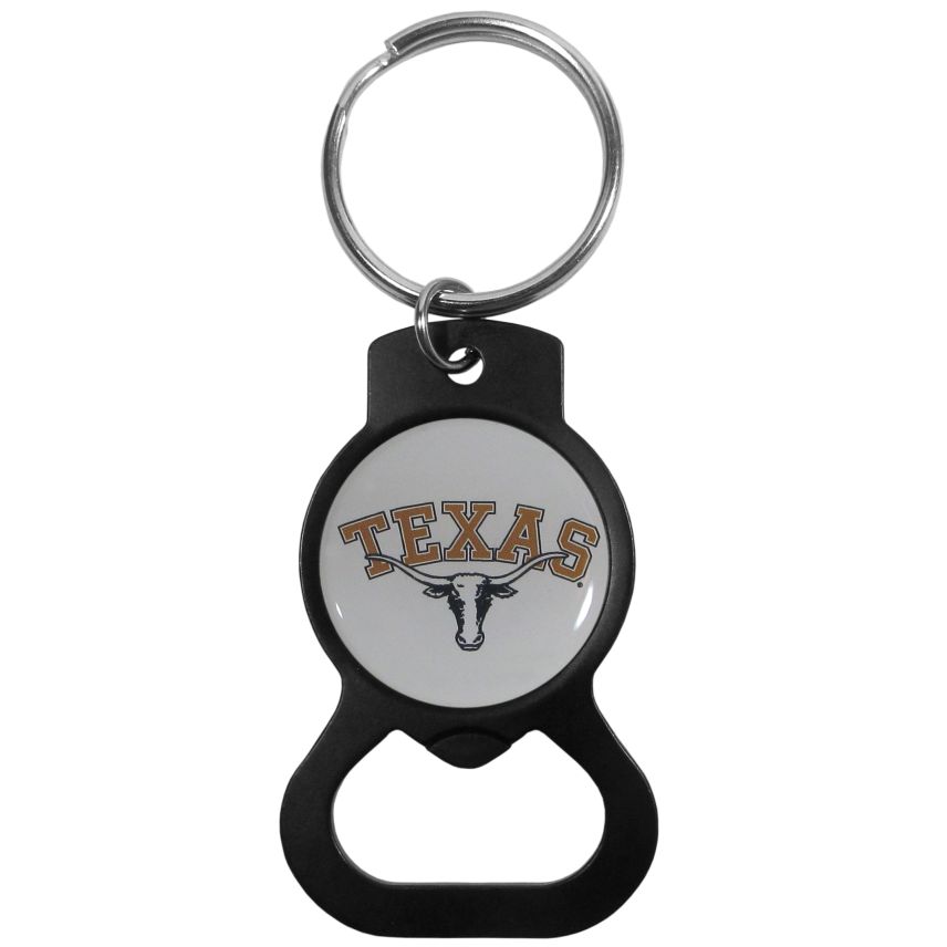 Hate searching for a bottle opener, get our Texas Longhorns bottle opener key chain and never have to search again! The matte black key chain features a bright team emblem.