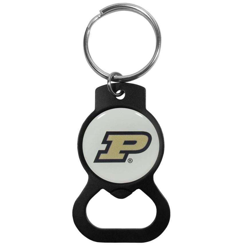 Hate searching for a bottle opener, get our Purdue Boilermakers bottle opener key chain and never have to search again! The matte black key chain features a bright team emblem.