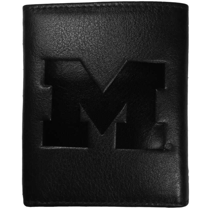 This stylish leather wallet is made of high quality leather with a supple feel and classic look. The front of the tri-fold style wallet has a deeply embossed Michigan Wolverines logo. The billfold is packed with features that will allow to keep organized, lots of credit card slots, windowed ID slot, large pockets for bills and a removable sleeve with extra slots for even more storage. This is a must-have men's fashion accessory that would make any fan very proud to own.