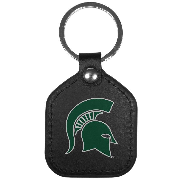 Our geniune leather key chain features a large Michigan St. Spartans logo printed in excellent detail. The quality fob has stitching details around the edges and comes with a standard split ring for organizing home and auto keys.
