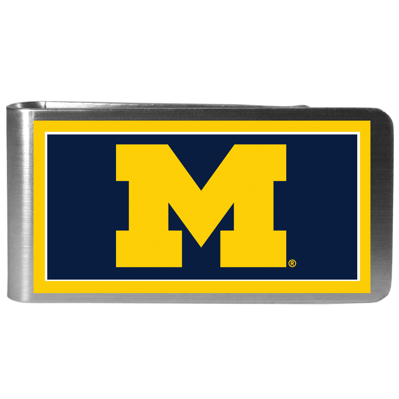 Our brightly colored steel money clips have a classic style and superior quality. The strong, steel clip has a primary colors of the Michigan Wolverines and their logo over the brushed metal finish creating a stylish men's fashion accessory that would make any fan proud.
