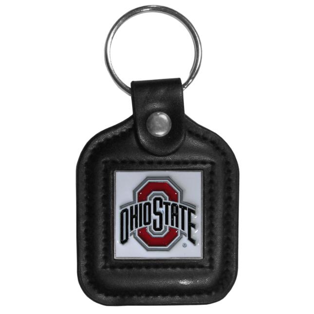 Our Ohio St. Buckeyes black key fob with stitched detail and inlaid, metal team emblem with enameled color details.