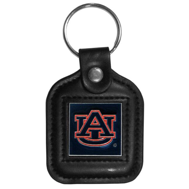 Our Auburn Tigers black key fob with stitched detail and inlaid, metal team emblem with enameled color details.