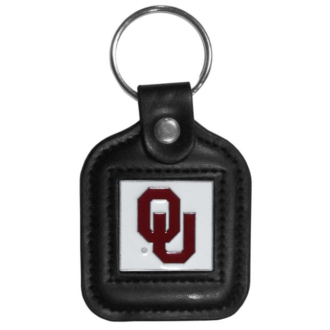 Our Oklahoma Sooners black key fob with stitched detail and inlaid, metal team emblem with enameled color details.