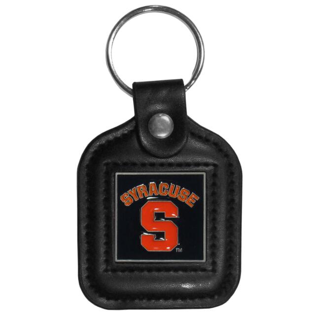 Our Syracuse Orange black key fob with stitched detail and inlaid, metal team emblem with enameled color details.