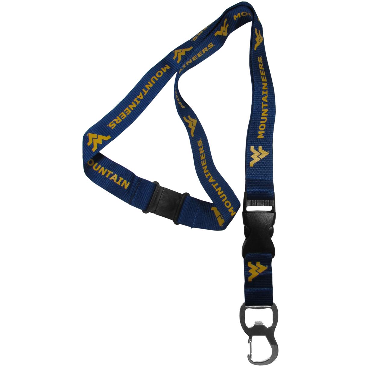 Our high-quality bottle opener lanyards are 36 inches long with a detachable 6 inch long piece that features a bottle opener that has a clip for keys and lanyards. The nylon weave is durable and features alternating West Virginia Mountaineers logos and name.