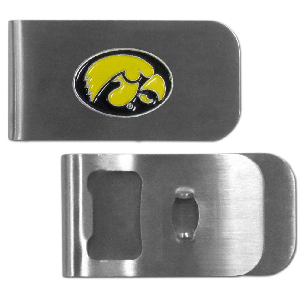 This unique clip features a classic, brushed-metal finish with a handy bottle opener feature on the back. The clip has a metal Iowa Hawkeyes emblem with expertly enameled detail