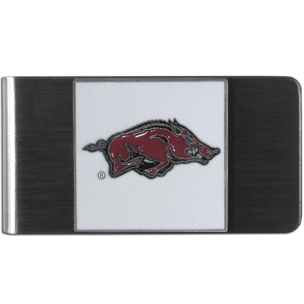 Our stainless steel money clip has classic style and team pride wrapped up in a beautiful package. The attractive clip features a metal Arkansas Razorbacks emblem with expertly enameled detail