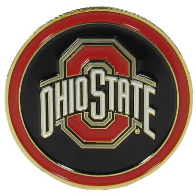 Our golf ball marker coin is 1.75 inches and is made of fully cast metal with expertly enameled team colors. The Ohio St. Buckeyes logo on the front and the back has a removable ball marker that is held in place with magnets that also features the team logo.