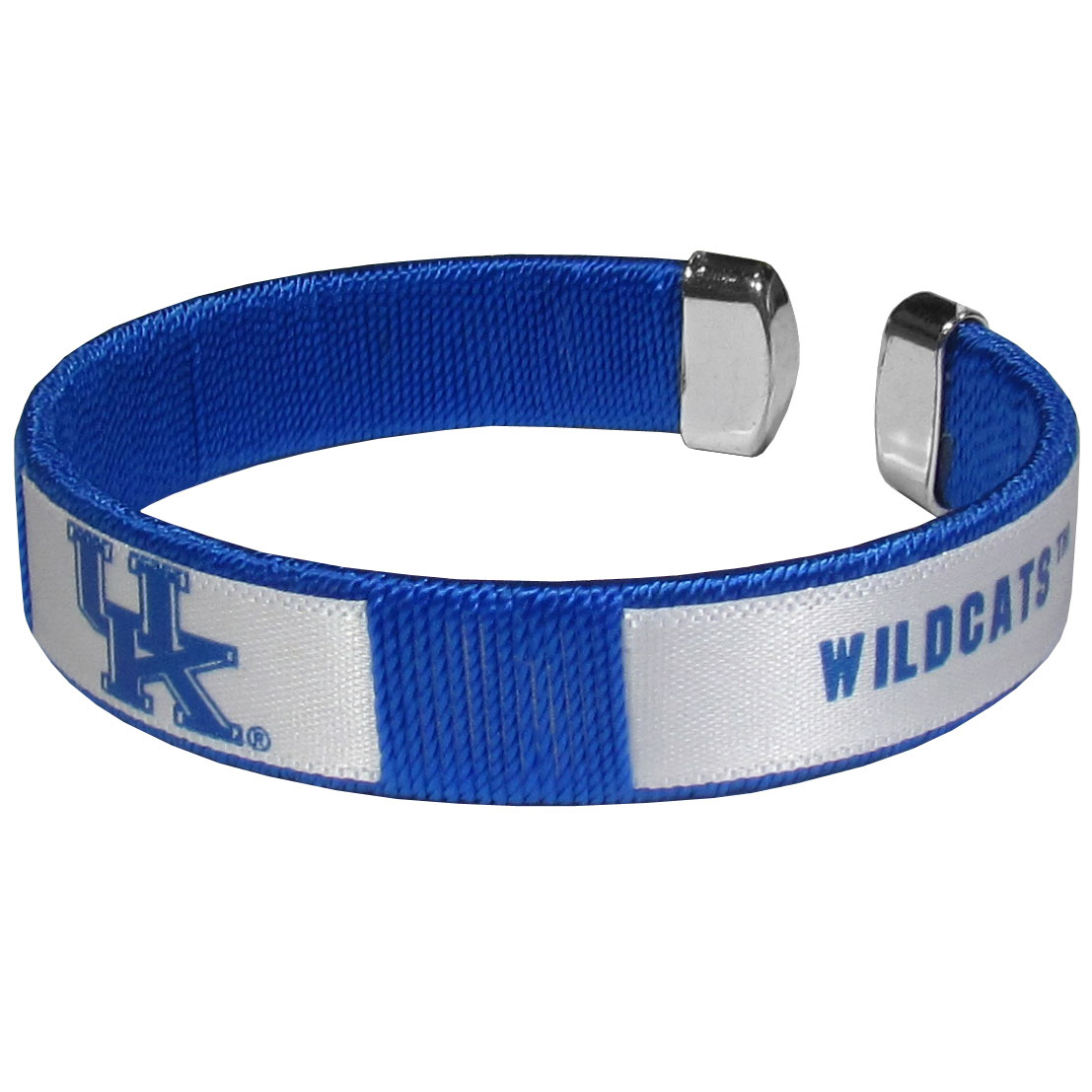Our Fan Bracelet is a one size fits all string cuff bracelets with a screen printed ribbon with the team Kentucky Wildcats name and logo.