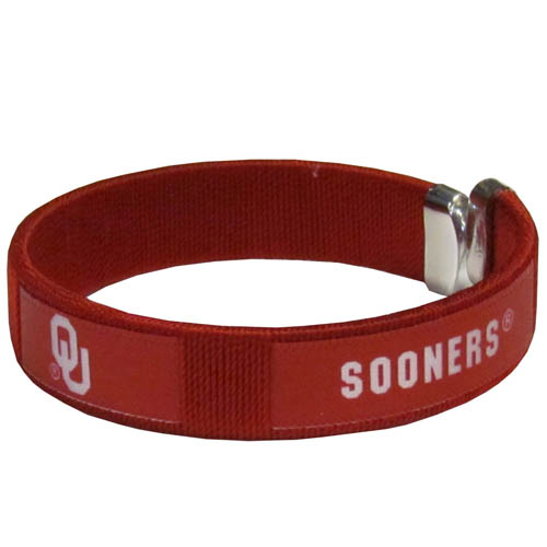 Our Fan Bracelet is a one size fits all string cuff bracelets with a screen printed ribbon with the team Oklahoma Sooners name and logo.