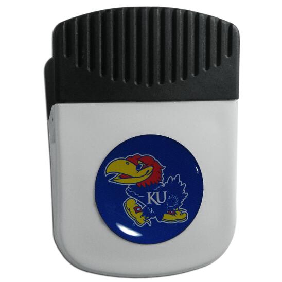 Use this attractive clip magnet to hold memos, photos or appointment cards on the fridge or take it down keep use it to clip bags shut. The magnet features a domed Kansas Jayhawks logo.
