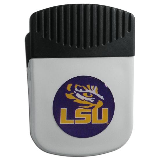 Use this attractive clip magnet to hold memos, photos or appointment cards on the fridge or take it down keep use it to clip bags shut. The magnet features a domed LSU Tigers logo.
