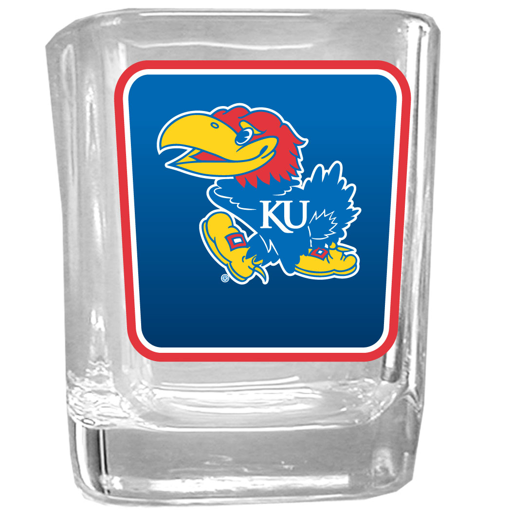 Our glass shot glasses are perfect for collectors or any game day event. The 2 ounce glasses feature bright, vidid digital Kansas Jayhawks graphics.