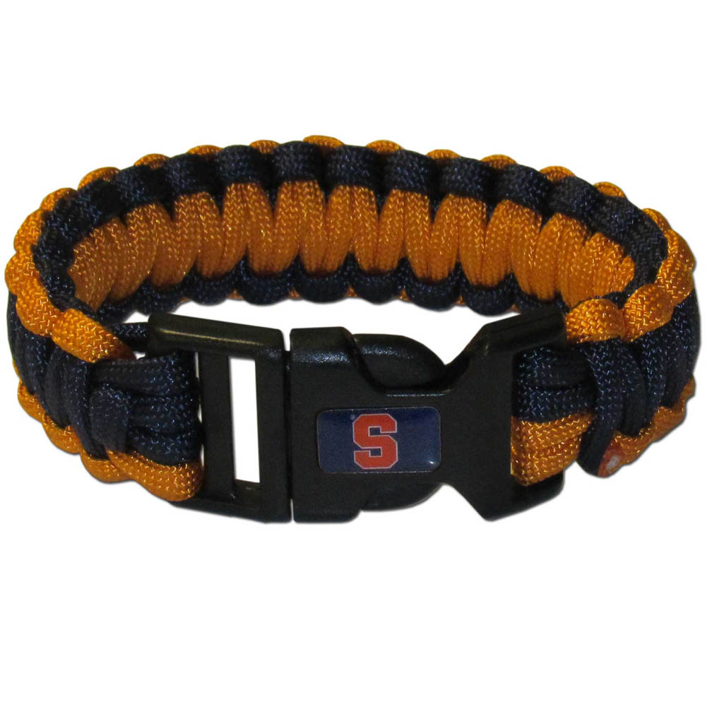 Our functional and fashionable Syracuse Orange survivor bracelets contain 2 individual 300lb test paracord rated cords that are each 5 feet long. The team colored cords can be pulled apart to be used in any number of emergencies and look great while worn. The bracelet features a team emblem on the clasp.