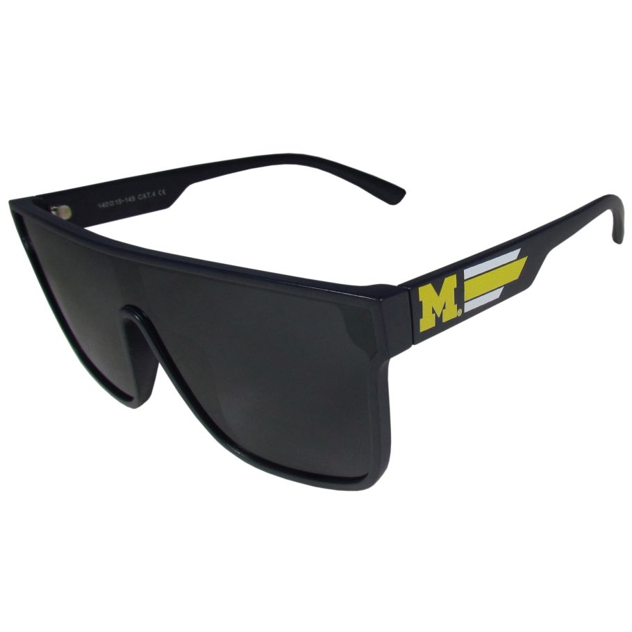 These trendy flat top style glasses come with Michigan Wolverines designs on a team colored frame. The light-weight frames are built to last with flex hinges for comfort and durability. These fashionable sunglasses are perfect for someone with an active lifestyle. Whether you are hiking, fishing, boating, running on the beach, golfing or playing your favorite sport these designer frames will bring style to all of your outdoor activities.