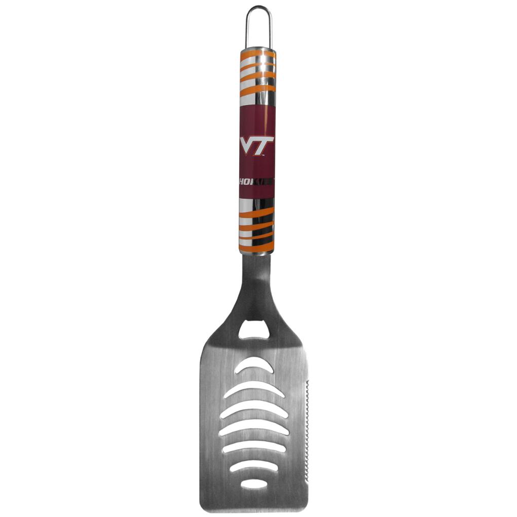 Our tailgater spatula really catches your eye with flashy chrome accents and vivid Virginia Tech Hokies digital graphics. The 420 grade stainless steel spatula is a tough, heavy-duty tool that will last through years of tailgating fun. The spatula features a bottle opener and sharp serrated edge.