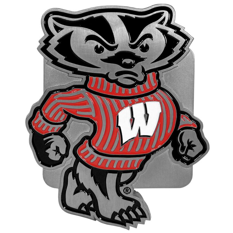 Our lighter weight, full-metal hitches are still tougher than your average hitch cover at 1/8 of an inch thick. The heavy-duty cast zinc hitch plate feature the Wisconsin Badgers logo with enameled detail. The wire hitch plugs are included for the class III hitch receivers.