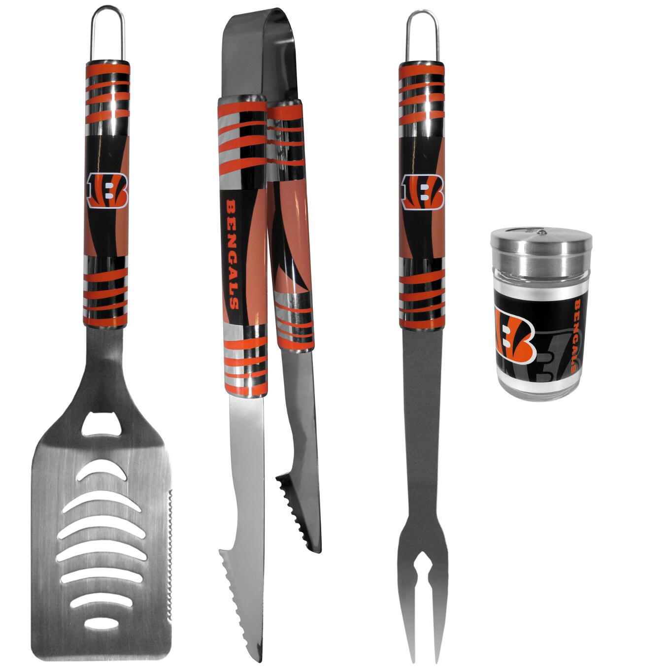 The eye-catching chrome graphics on this set make it a game day favorite! The high-quality, 420 grade stainless steel 3 pc Cincinnati Bengals BBQ grill set will make any grill master smile. These barbeque tools are made to last and the tool set includes a large spatula with a bottle opener feature and sharp serrated edge, strong tongs and fork. The 16 inch length keeps you far from the flames. Paired with our tailgater season shakers and you’re ready for any game day event! This compact shaker is 2 inch tall with a twist top that closes off the holes at the top making it perfect for travel preventing those messy spills. The shaker has wide holes perfect for keeping your pepper seeds or cheese toppings.
