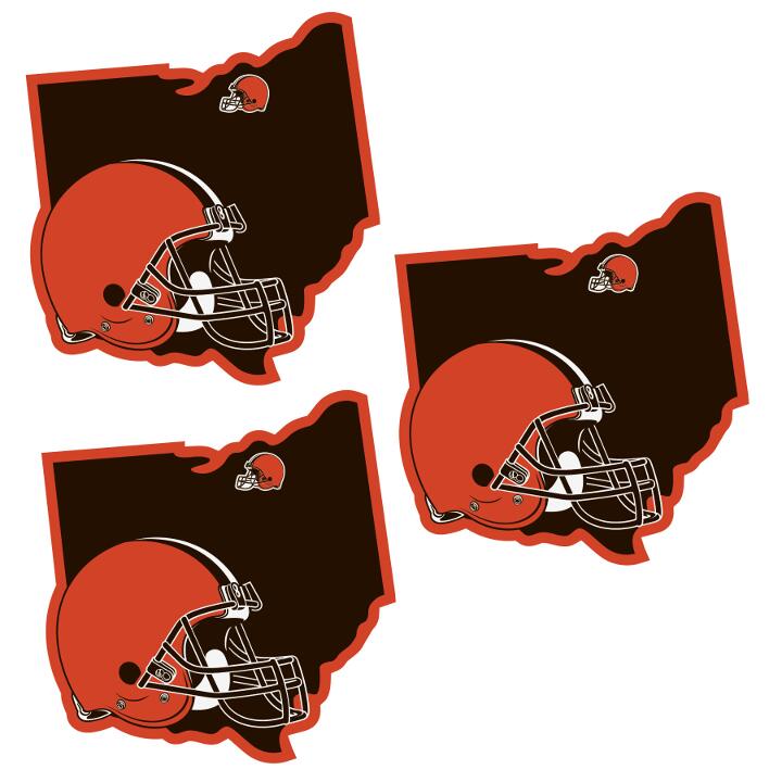 It's a home state decal with a sporty twist! This Cleveland Browns decal feature the team logo over a silhouette of the state in team colors and a heart marking the home of the team. The decal is approximately 5 inches on low tack vinyl.