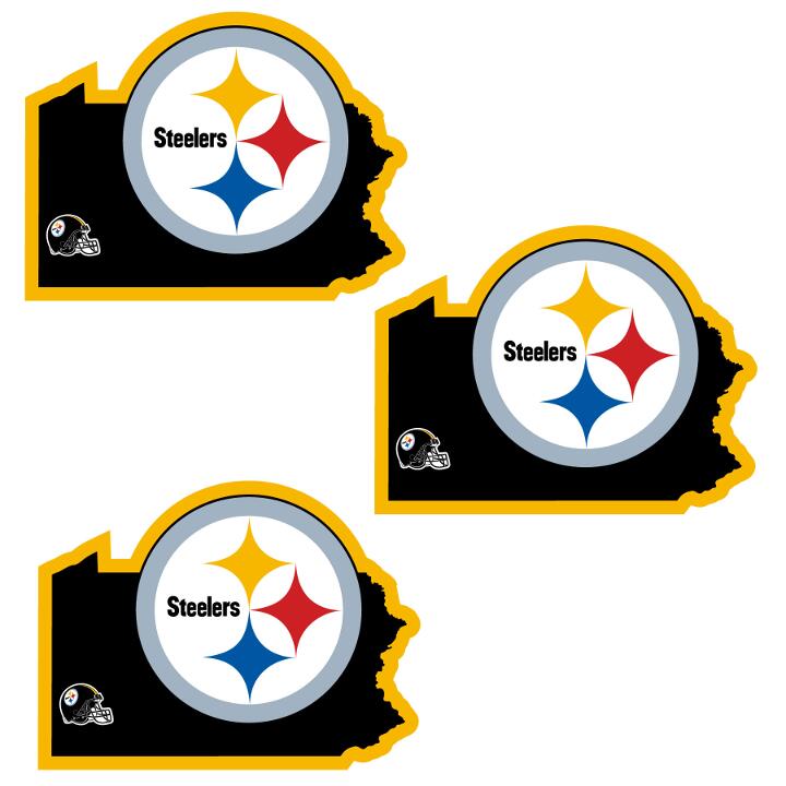 It's a home state decal with a sporty twist! This Pittsburgh Steelers decal feature the team logo over a silhouette of the state in team colors and a heart marking the home of the team. The decal is approximately 5 inches on low tack vinyl.