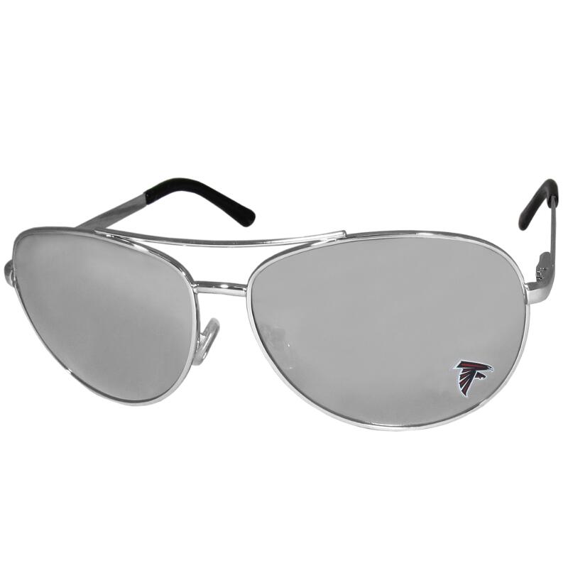 Our aviator sunglasses have the iconic aviator style with mirrored lenses and metal frames. The glasses feature a silk screened Atlanta Falcons logo in the corner of the lense. 100% UVA/UVB protection.