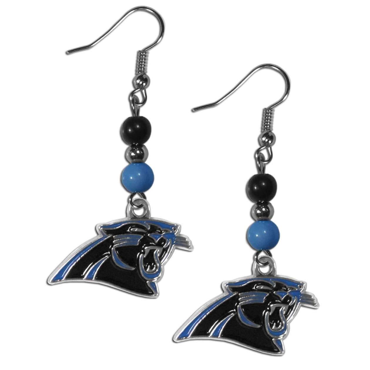 Love your team, show it off with our Carolina Panthers bead dangle earrings! These super cute earrings hang approximately 2 inches and features 2 team colored beads and a high polish team charm. A must have for game day!