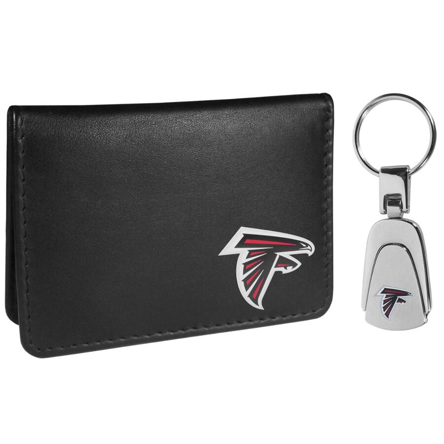 This unique mini wallet has all the benefits of a weekend wallet with the added security of a traditional bi-fold. Unlike other weekend wallets that can become stretched and allow your credit cards to slip free this wallet flips over to close and make sure your cash and cards remove safely inside the wallet. The classic black wallet features a Atlanta Falcons logo expertly printed on the front corner. Comes with a stylish steel teardrop key chain that features the team logo printed on the front and a high polish chrome finish on the back.