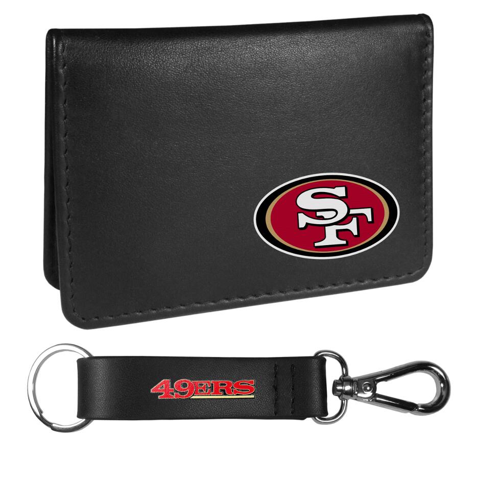 Ditch your bulky wallet! This super slim leather wallet is the perfect weekend companion and sports fan accessory. The compact design features 2 credit card slots on the front and one on the back and an inner middle pocket for cash. The front of the wallet has a crisp silk screened San Francisco 49ers logo expertly printed on the front corner. Comes with a stylish black strap key chain with clip to easily attach to belts, backpacks or purses.