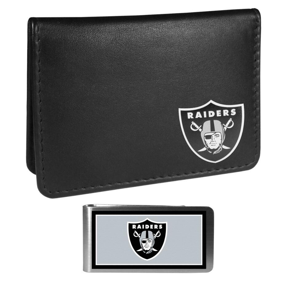 This unique mini wallet has all the benefits of a weekend wallet with the added security of a traditional bi-fold. Unlike other weekend wallets that can become stretched and allow your credit cards to slip free this wallet flips over to close and make sure your cash and cards remove safely inside the wallet. The classic black wallet features a Las Vegas Raiders logo expertly printed on the front corner. Comes with separate steel money clip with a full color team design.