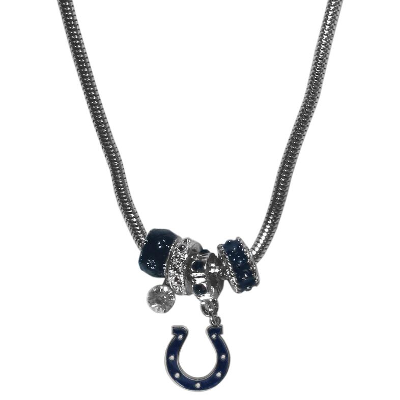 We have combined the wildly popular Euro style beads with your favorite team to create our Indianapolis Colts bead necklace. The 18 inch snake chain features 4 Euro beads with enameled team colors and rhinestone accents with a high polish, nickel free charm and rhinestone charm. Perfect way to show off your team pride.