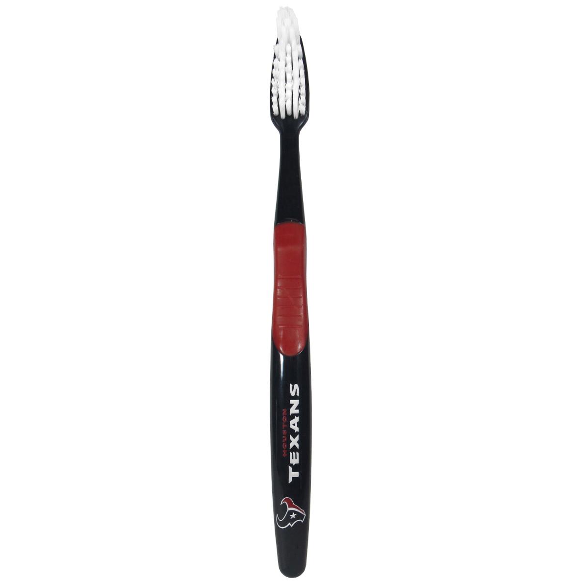 A great way to show off your team spirit! Our licensed toothbrushes have opposing angled bristles to reach between teeth with each forward and backward stroke. The extended tip accesses hard-to-reach areas of the mouth. Cool Houston Texans graphics and colors.
