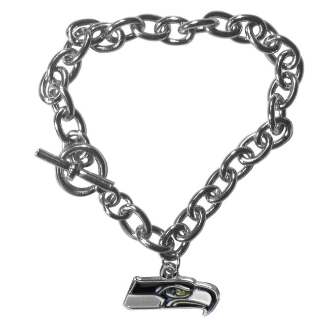 Our classic single charm bracelet is a great way to show off your team pride! The 7.5 inch large link chain features a high polish Seattle Seahawks charm and features a toggle clasp which makes it super easy to take on and off.
