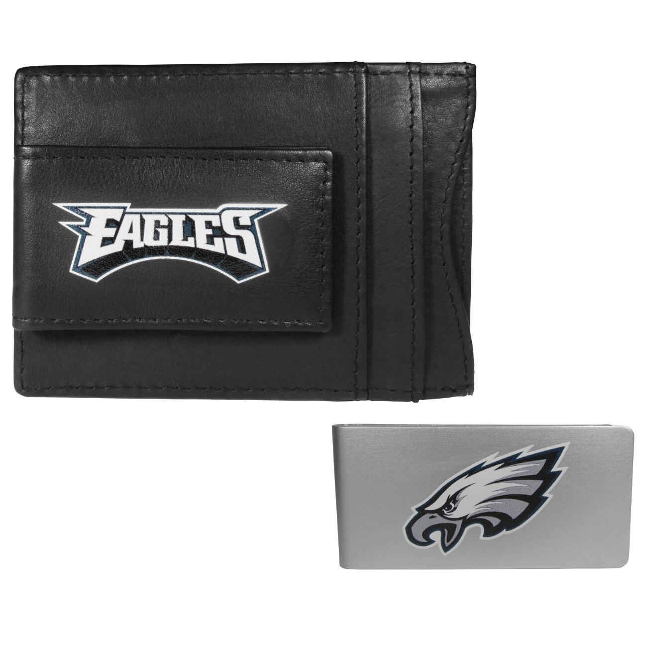 This super slim leather wallet lets you have all the benefits of a money clip while keeping the organization of a wallet. On one side of this front pocket wallet there is a strong, magnetic money clip to keep your cash easily accessible and the Philadelphia Eagles team logo on the front. The wallet comes with separate money clip with a brushed metal finish.