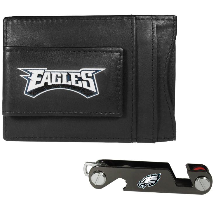 This super slim leather wallet lets you have all the benefits of a money clip while keeping the organization of a wallet. On one side of this front pocket wallet there is a strong, magnetic money clip to keep your cash easily accessible and the Philadelphia Eagles team logo on the front. Comes with our innovative key organizer that stores your keys in a compact, easy to access bundle with Swiss style engineering. You can load up to 10 keys that zipper back into the organizer so that you never have to deal with keys poking you in your pocket, damaging your purse or simply creating a ton of noise. There is a handy loop piece to attach your larger car key or fob.