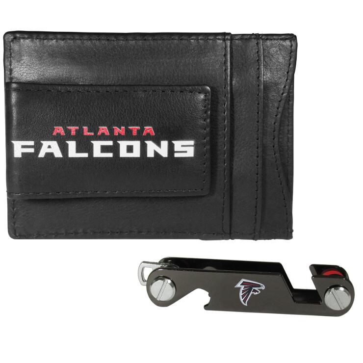 This super slim leather wallet lets you have all the benefits of a money clip while keeping the organization of a wallet. On one side of this front pocket wallet there is a strong, magnetic money clip to keep your cash easily accessible and the Atlanta Falcons team logo on the front. Comes with our innovative key organizer that stores your keys in a compact, easy to access bundle with Swiss style engineering. You can load up to 10 keys that zipper back into the organizer so that you never have to deal with keys poking you in your pocket, damaging your purse or simply creating a ton of noise. There is a handy loop piece to attach your larger car key or fob.