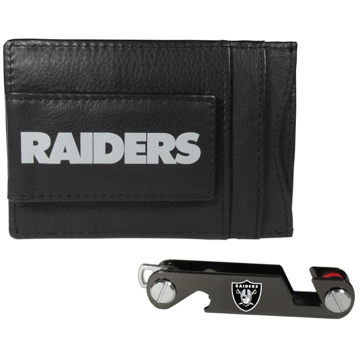 This super slim leather wallet lets you have all the benefits of a money clip while keeping the organization of a wallet. On one side of this front pocket wallet there is a strong, magnetic money clip to keep your cash easily accessible and the Las Vegas Raiders team logo on the front. Comes with our innovative key organizer that stores your keys in a compact, easy to access bundle with Swiss style engineering. You can load up to 10 keys that zipper back into the organizer so that you never have to deal with keys poking you in your pocket, damaging your purse or simply creating a ton of noise. There is a handy loop piece to attach your larger car key or fob.