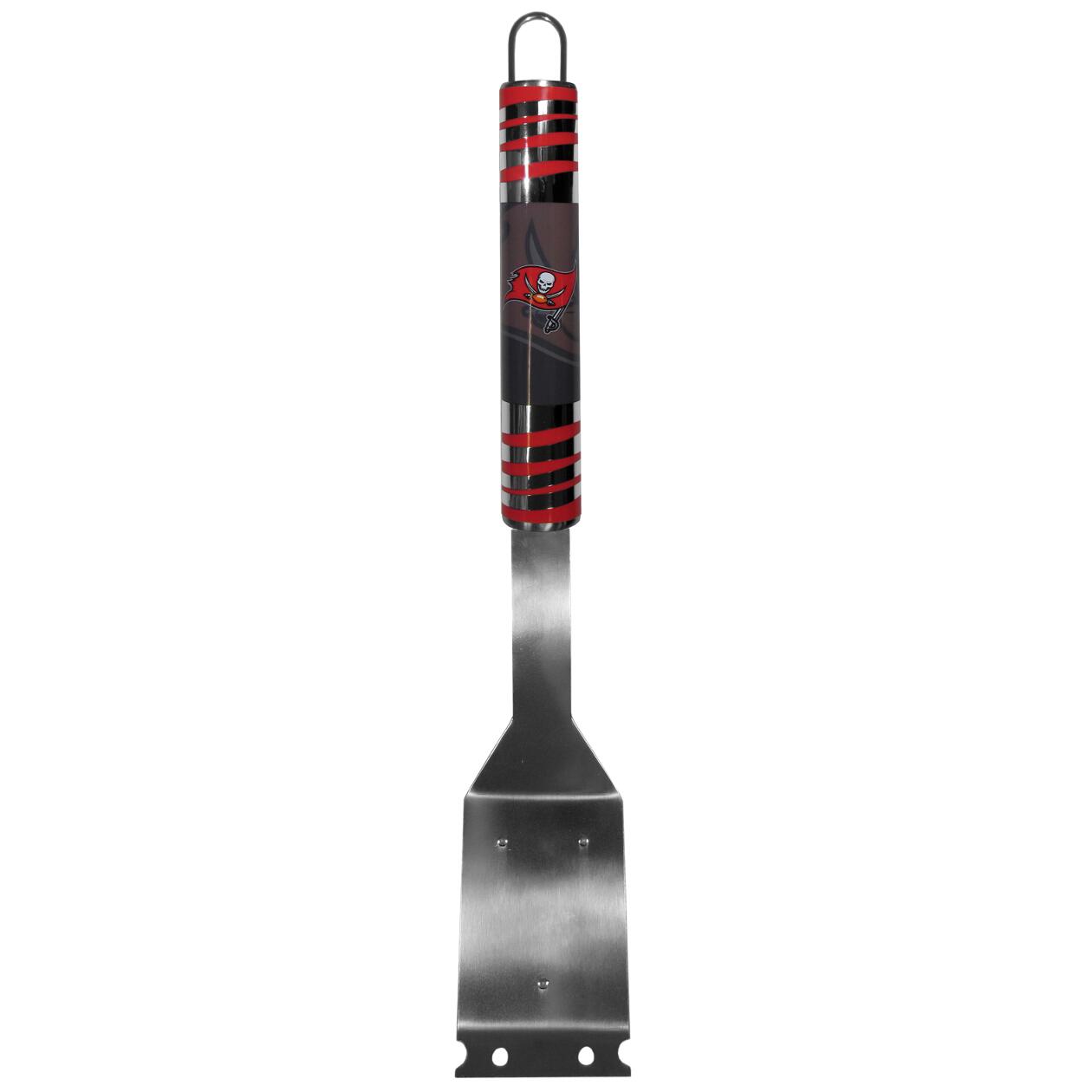 Our stainless steel grill brush with scraper is 16 inches long and features Tampa Bay Buccaneers graphics with team color and chrome accents. Since the brush is made of stainless steel it will not rust or deteriorate and has a scraper tool at the end to help remove debris from the grates.
