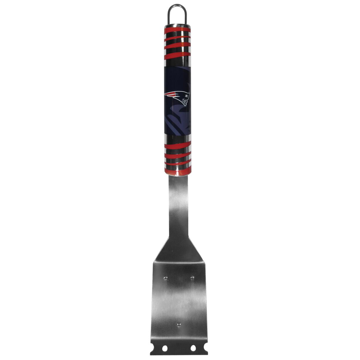 Our stainless steel grill brush with scraper is 16 inches long and features New England Patriots graphics with team color and chrome accents. Since the brush is made of stainless steel it will not rust or deteriorate and has a scraper tool at the end to help remove debris from the grates.