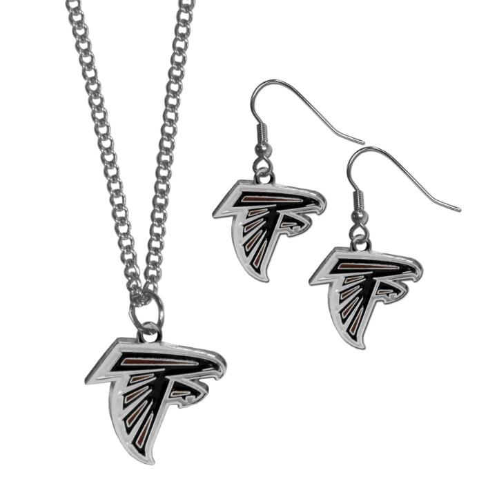 This classic jewelry set contains are most popular Atlanta Falcons dangle earrings and 22 inch chain necklace. The trendy, dangle earrings are lightweight and feature a fully cast metal team charm with enameled team colors. The matching necklace completes this fashion forward combo and is a spirited set that is perfect for game day but nice enough for everyday.