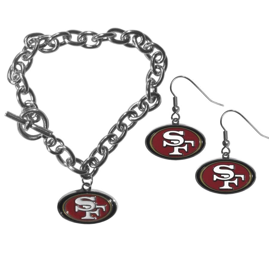 This San Francisco 49ers jewelry set comes with lightweight dangle earrings and a toggle chain bracelet. This sporty combo is the perfect fashion accessory for a fan looking for a fashionable way to show off her team pride.