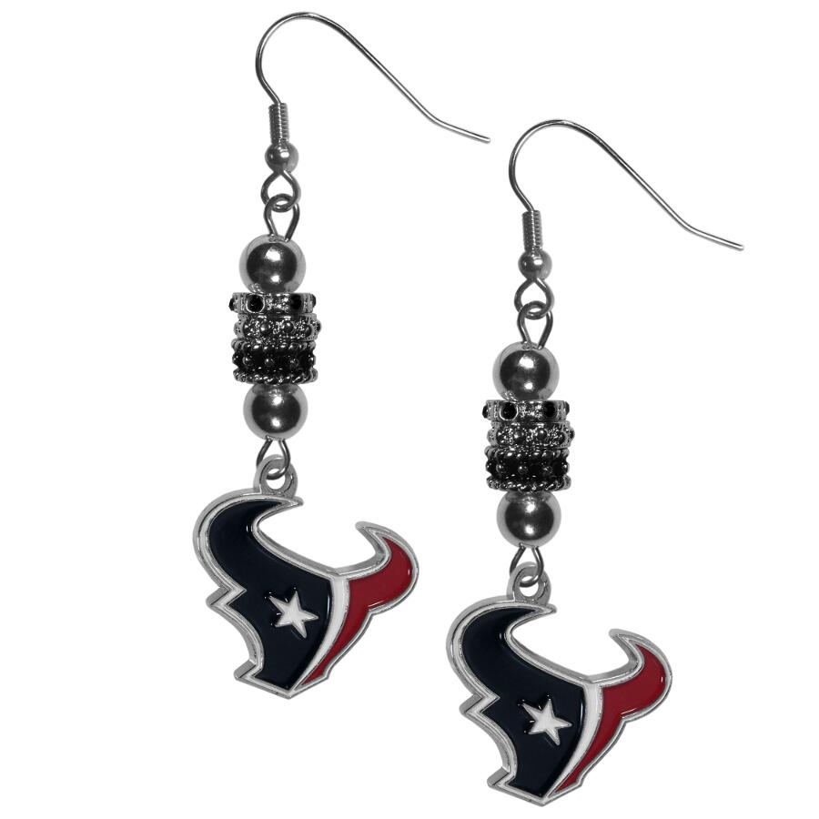 These beautiful euro style earrings feature 3 euro beads and a detailed Houston Texans charm on hypoallergenic fishhook posts.