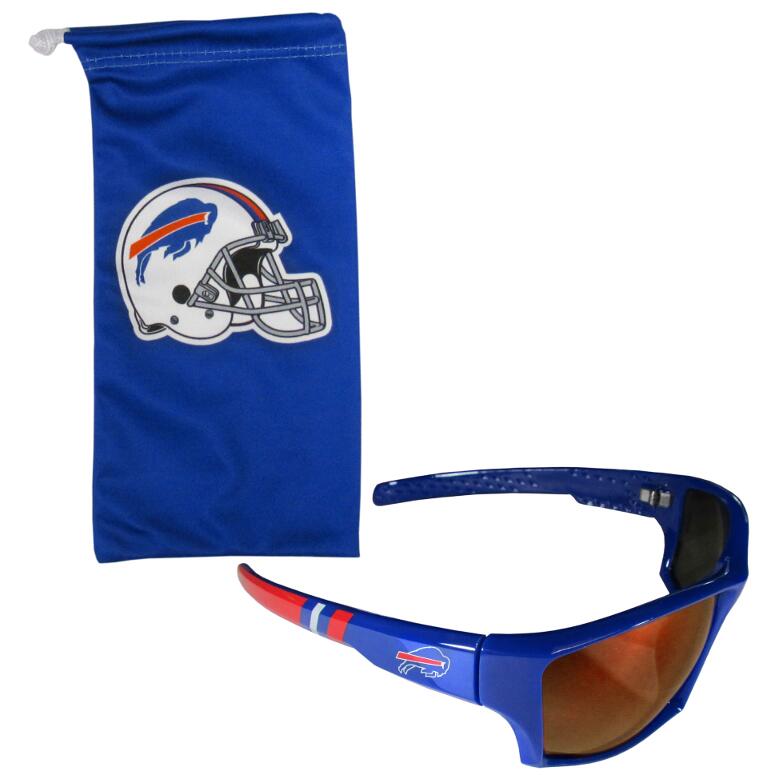 Be an icon of edgy style while you're in the stadium cheering your Buffalo Bills to victory with our polarized wrap sunglasses that feature 100% UVA/UVB rating for maximum UV protection. The light-weight frames are built to last with flex hinges for comfort and durability which make them perfect for driving or just lounging by the pool. The colorful rubber grips on the arms of these fashionable sunglasses make them perfect for someone with an active lifestyle. Comes with a microfiber bag in team colors that features the team name on one side and the primary logo on the other side. Bag can be used as a screen cleaner.