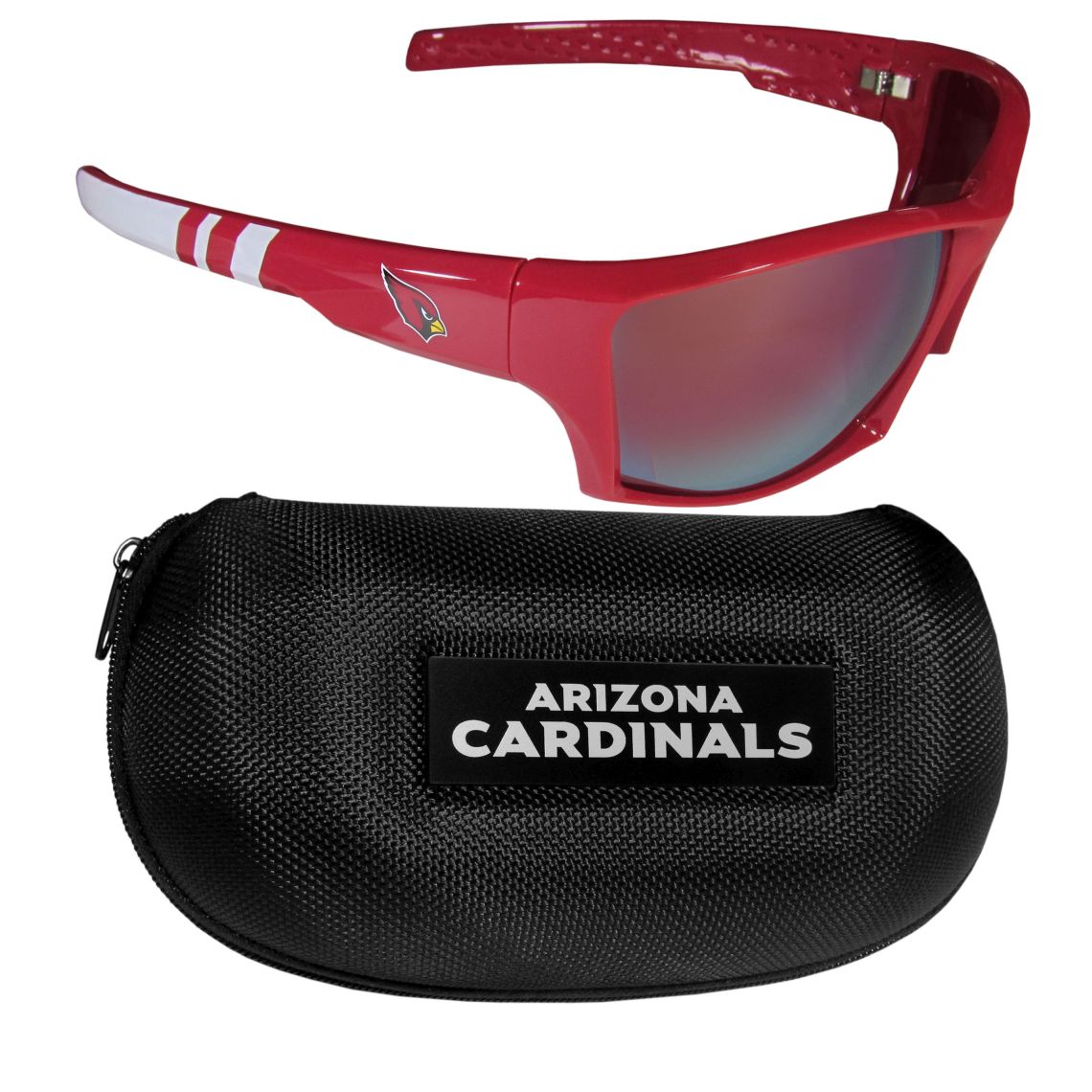 Be an icon of edgy style while you're in the stadium cheering your Arizona Cardinals to victory with our polarized wrap sunglasses that feature 100% UVA/UVB rating for maximum UV protection. The light-weight frames are built to last with flex hinges for comfort and durability which make them perfect for driving or just lounging by the pool. The colorful rubber grips on the arms of these fashionable sunglasses make them perfect for someone with an active lifestyle. Comes with a hard case with zippered closure and microfiber interior to protect your shades. The case features the team name printed on the top.